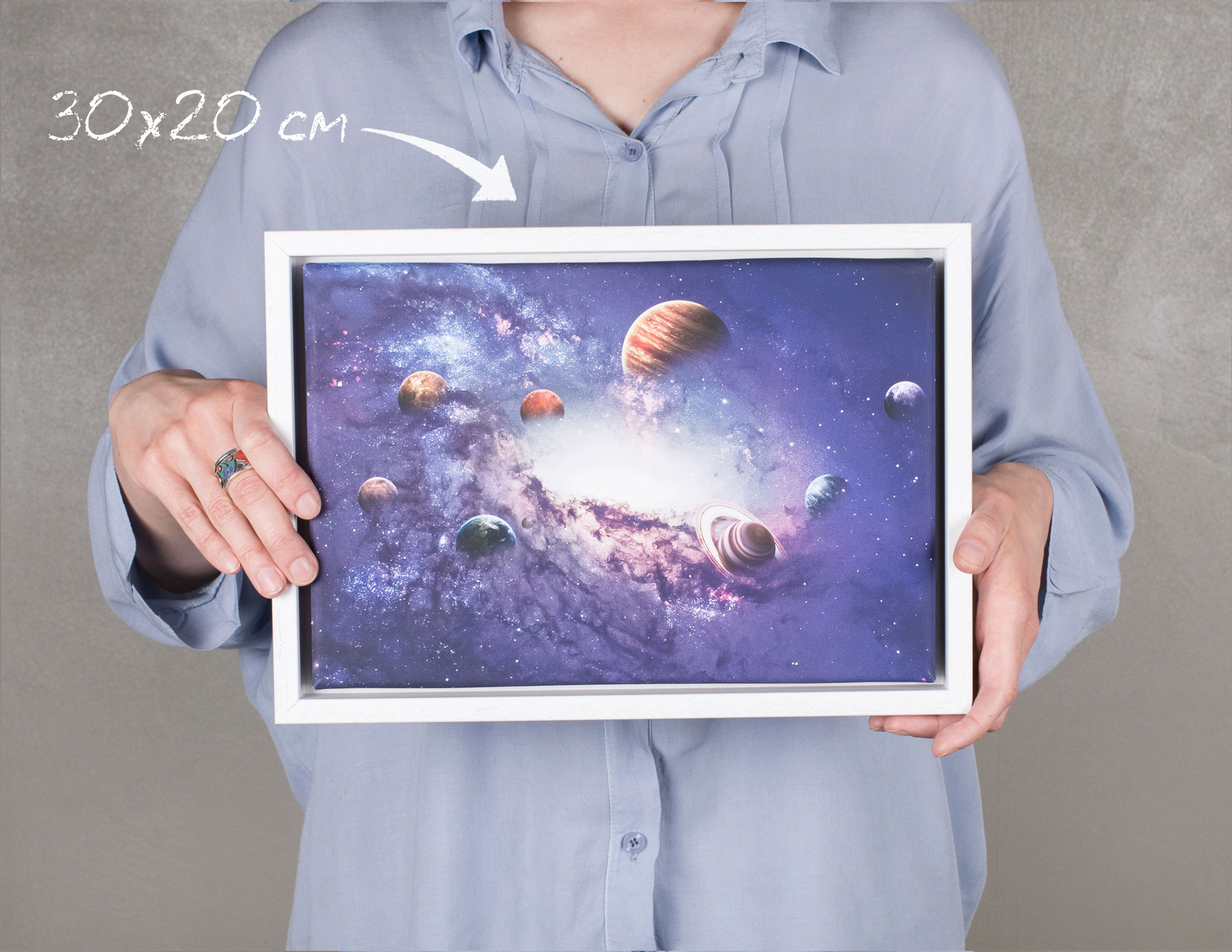 - Большой ассортимент. 8 форматов холста для любых стен и помещений и 2 типа багета в разных цветовых решениях на ваш выбор.